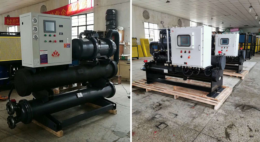 螺桿式冷水機按照散熱方式的不同可分為水冷螺桿式冷水機和風(fēng)冷螺桿式冷水機兩種